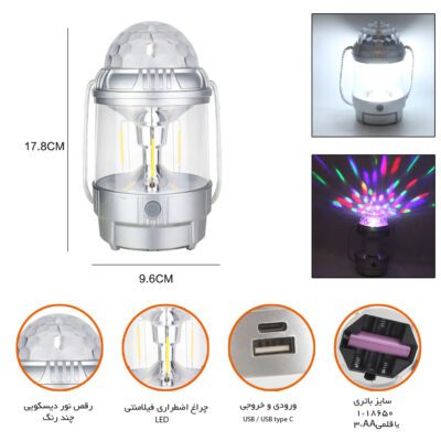 چراغ شارژی فانوسی رقص نور دار مدل HW-978W