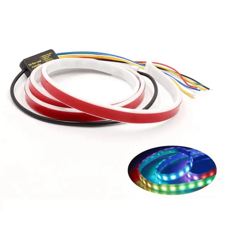 این محصول جهت تزیین درب صندوق شما ساخته شده است و دارای افکت های متنوعی است . این افکت ها شامل راهنما به سمت چپ یا راست حالت ترمز و همین طور برای حالت دنده عقب و همینطور رقص نور . این محصول دارای ال ای به رنگ های متنوع است تا رنگ های مورد نیاز برای افکت های مختلف را در اختیار شما بگذارد . نکته ای که جهت نصب محصول حتما باید به آن توجه شود نوع سیم های محصول است . در این محصول سیم منفی و مثب همیشه باید متصل باشند و در کنار سیم مثبت سایر سیم ها که برای حالت های مختلف تعبیه شده اند نصب شود و نکته پایانی این محصول 12 ولت است .