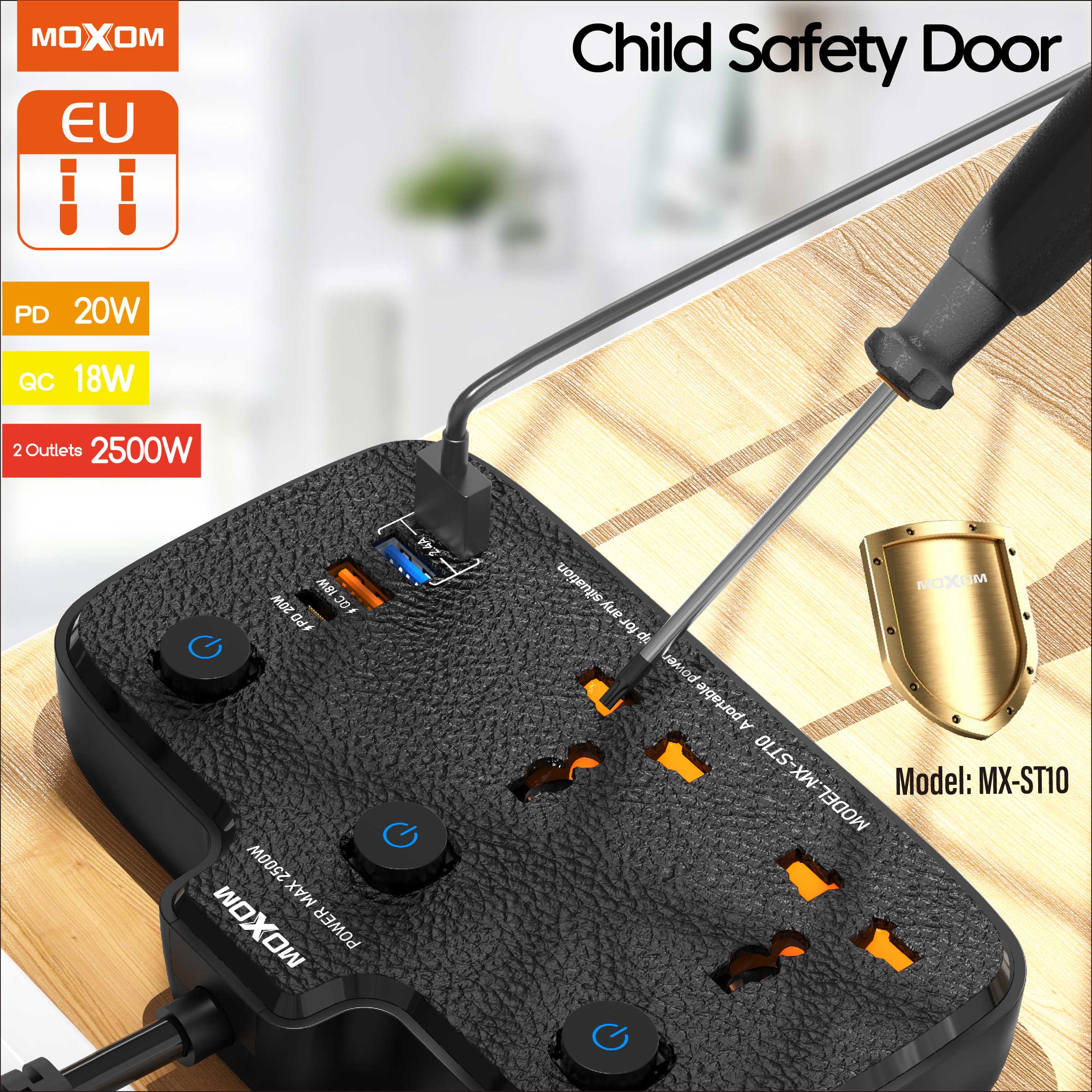با MOXOM MX-ST10، دیگر نیازی به حمل چندین آداپتور و کابل نخواهید داشت. این دستگاه با ارائه امکانات متعدد در یک طراحی جمعوجور، نظم و کارایی را به فضای شما میآورد و تجربهای نوین از مدیریت برق و شارژ دستگاههای الکترونیکی را برای شما فراهم میکند.